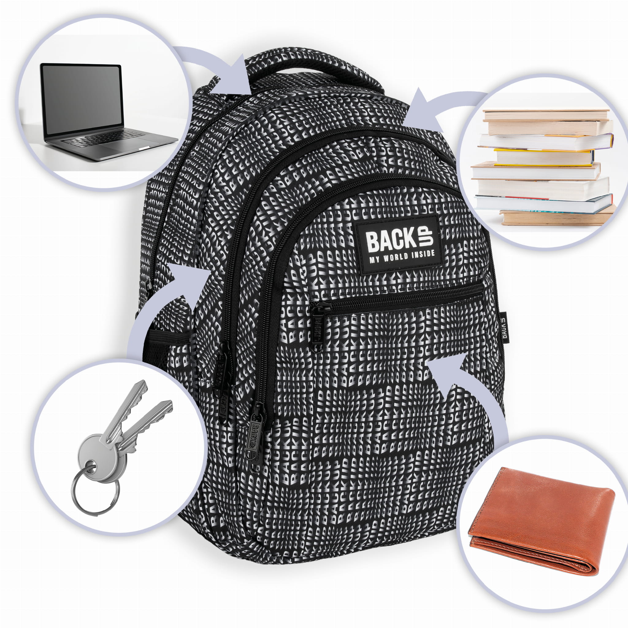 Taniej w zestawie!Plecak szkolny dla dziewczynki Back Up litery, czarny 26 l