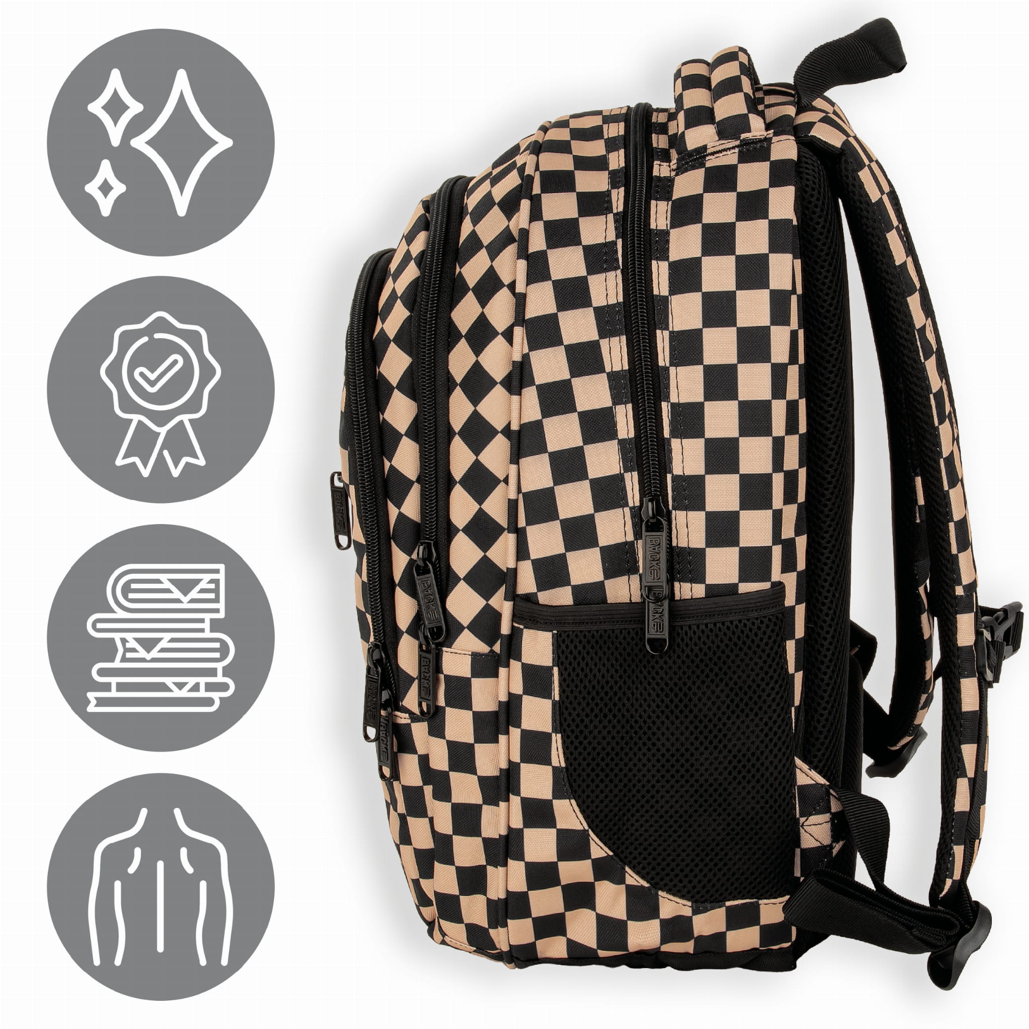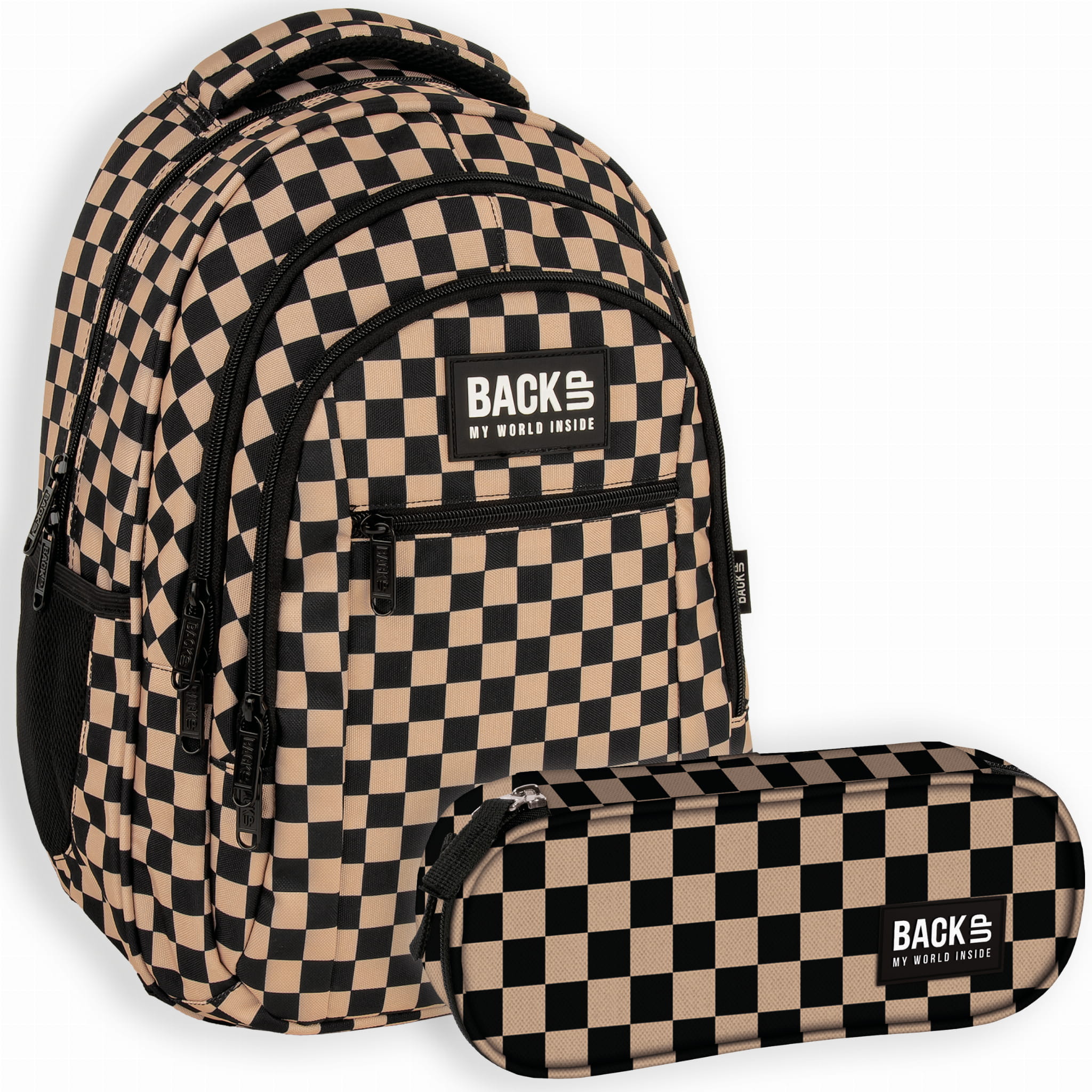 Taniej w zestawie!Plecak szkolny dla dziewczynki Back Up szachownica beżowo-czarna