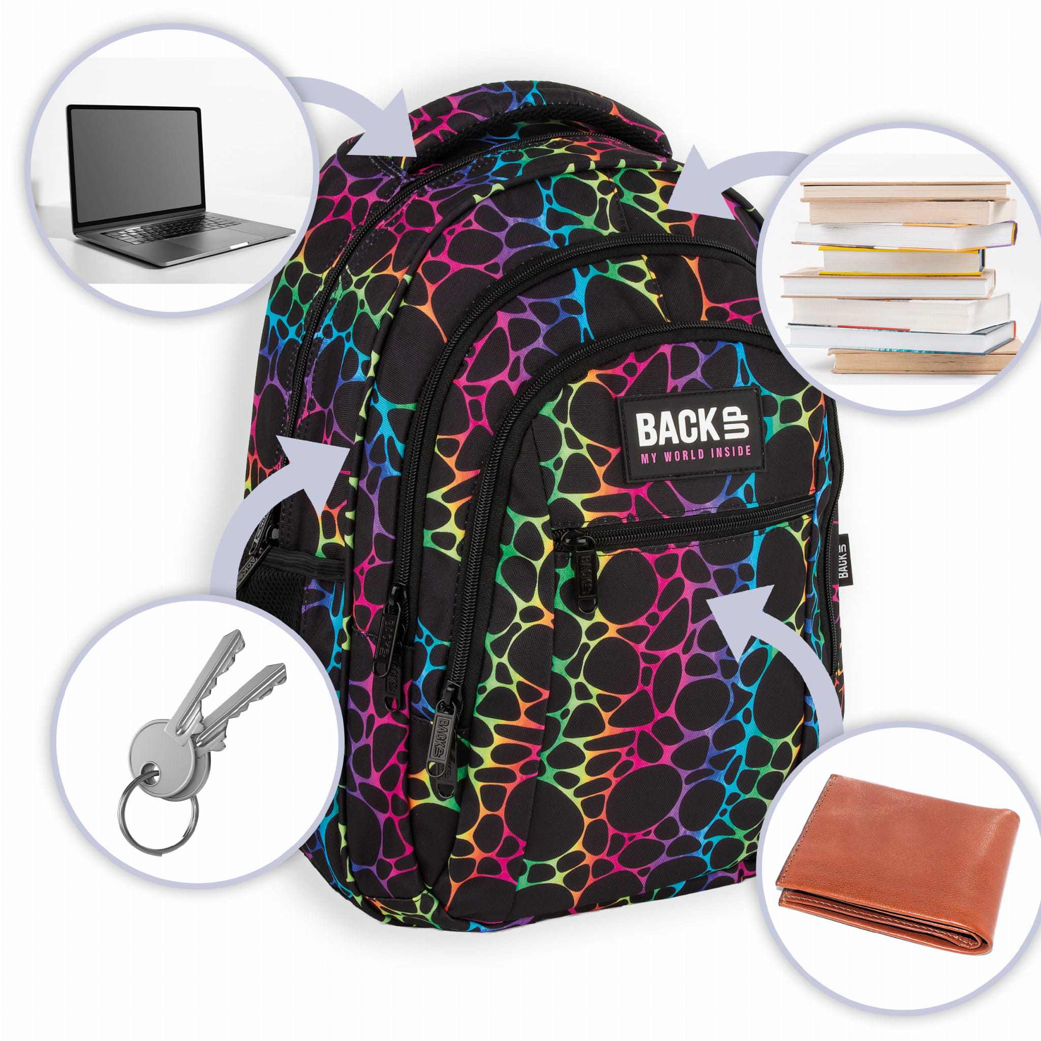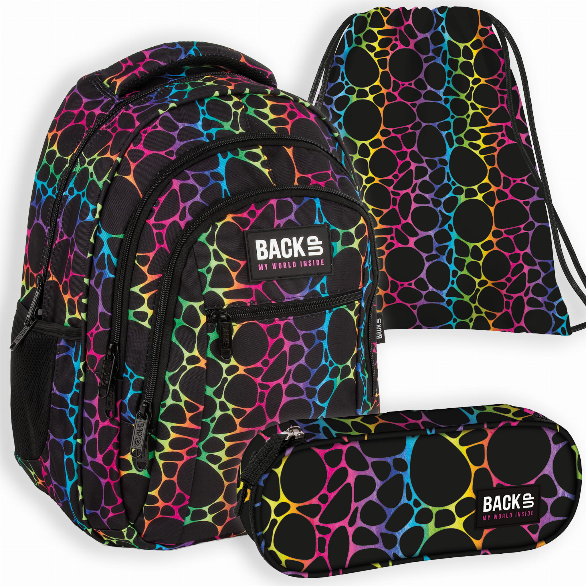 Taniej w zestawie!Plecak szkolny dla dziewczynki Back Up kolorowa tęcza fluo