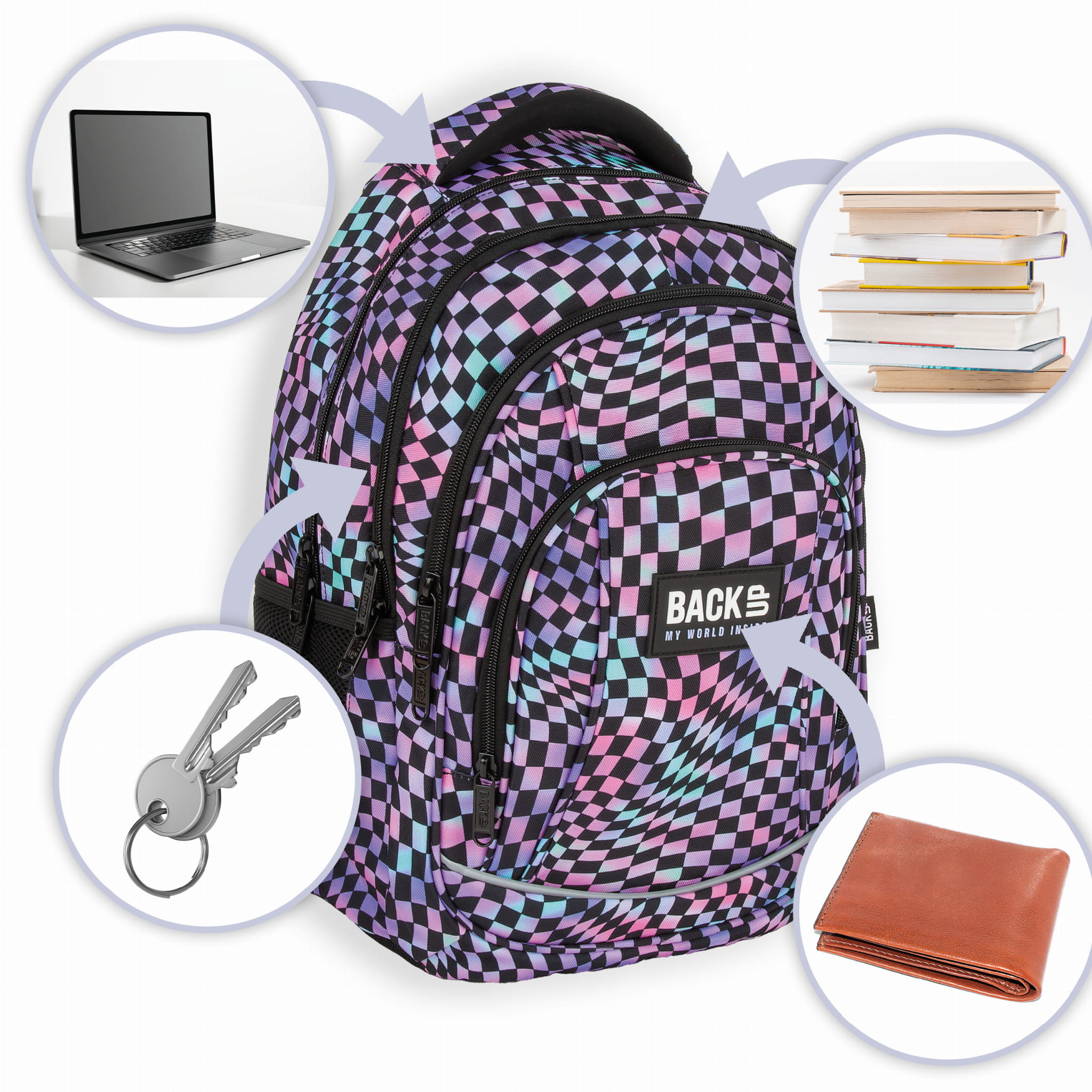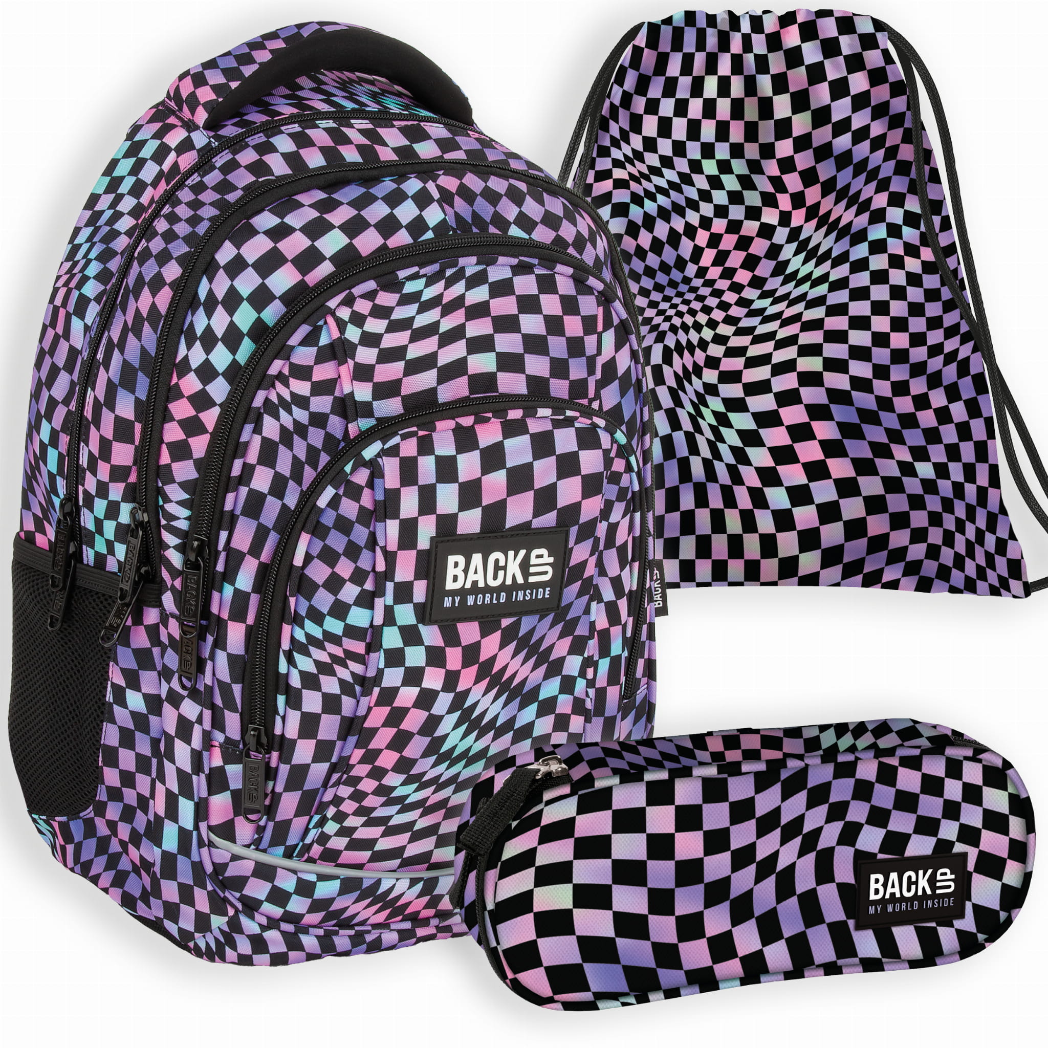 Taniej w zestawie!Plecak szkolny dla dziewczynki Back Up fioletowa szachownica, 26 l