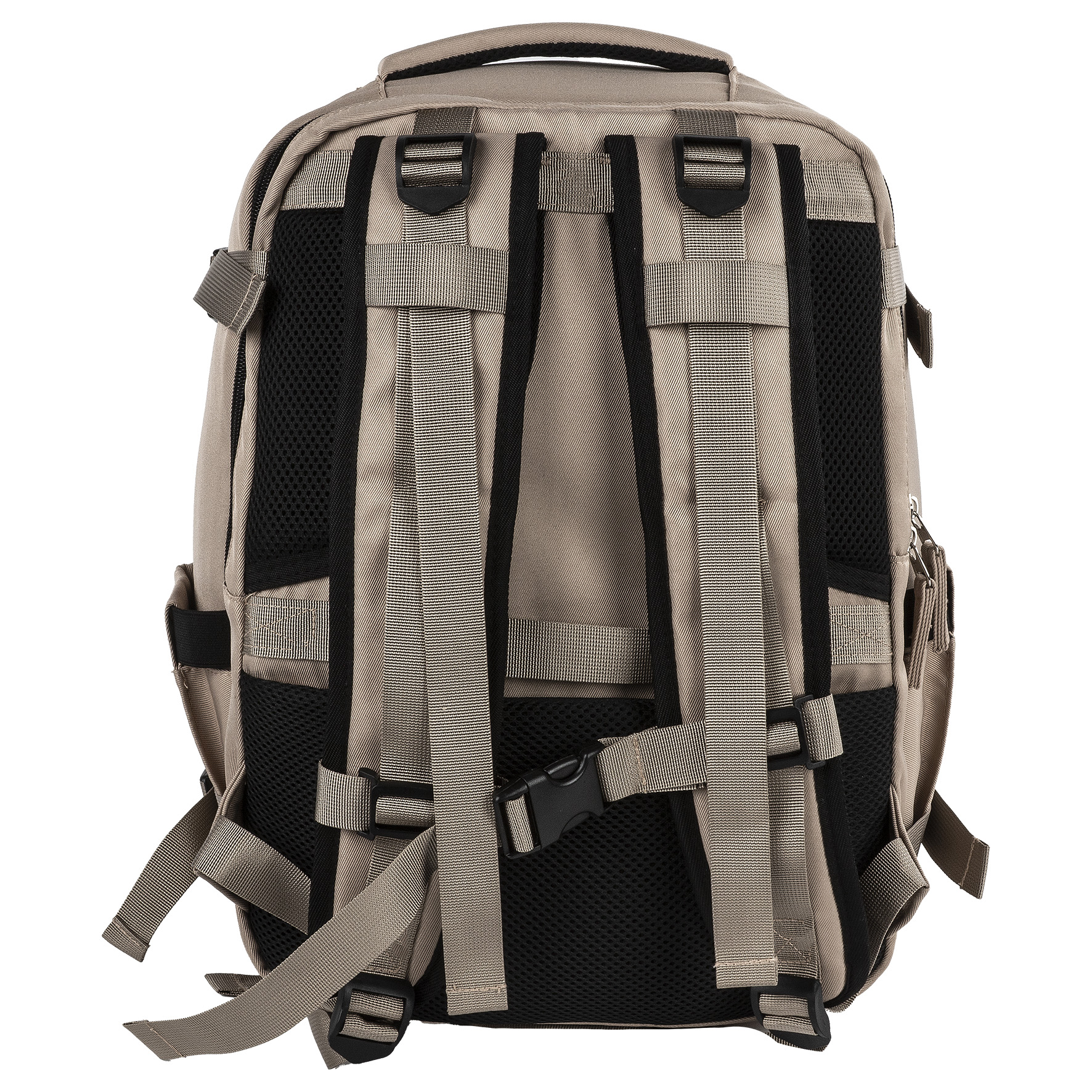 ✅ Uniwersalny, beżowy kolor z czarnymi detalami (zamki, paski, szelki) – elegancki i profesjonalny wygląd dla kobiet i mężczyzn.