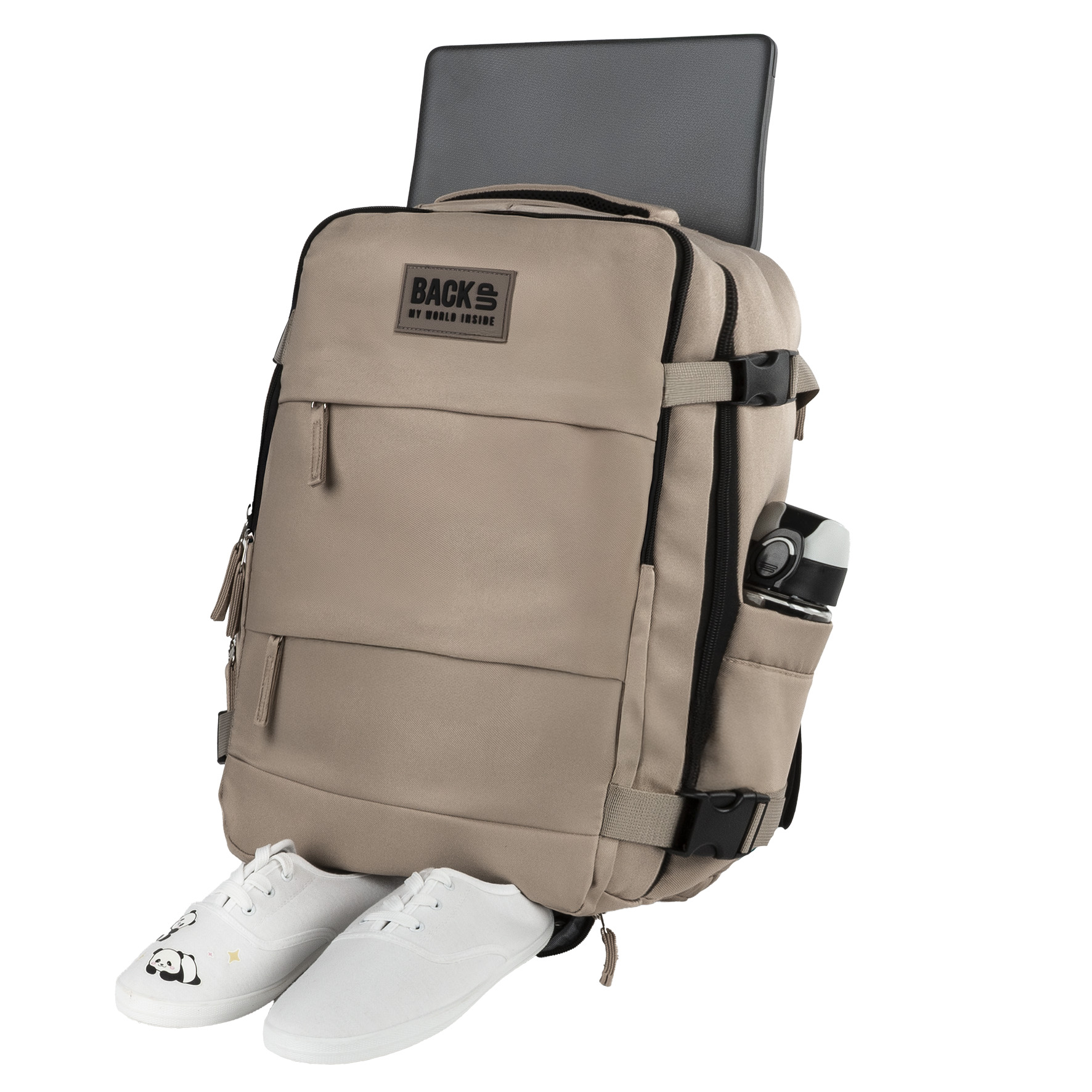 ✨ Szukasz praktycznego plecaka podróżnego, który bez problemu zabierzesz na pokład samolotu i nie dopłacisz za bagaż? Poznaj piaskowy plecak podróżny BACKUP w wymiarach kabinowych – idealny na krótkie wyjazdy i city breaki!