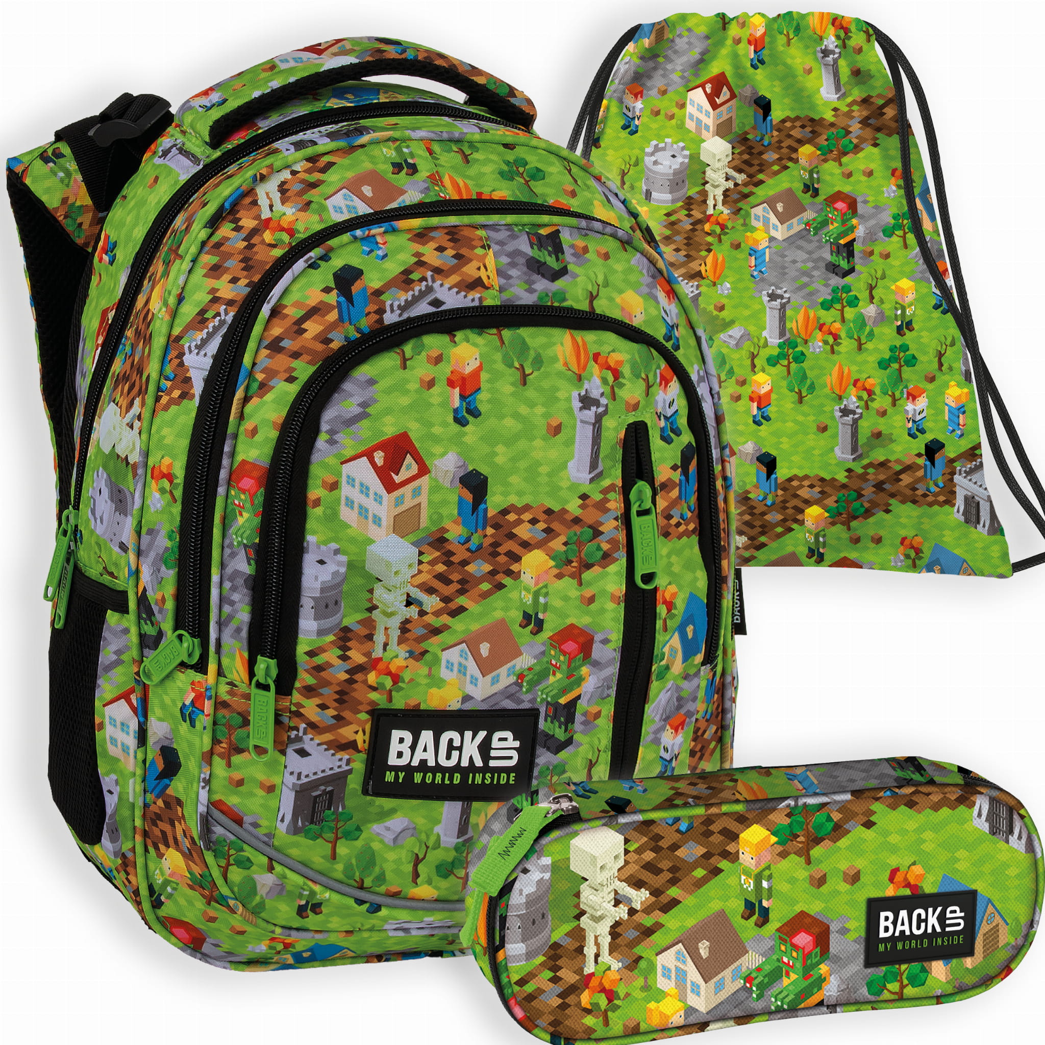 Zestaw szkolny dla chłopca 3w1 Back Up – plecak + piórnik + worek, Minecraft, motyw gamingowy, 24 l