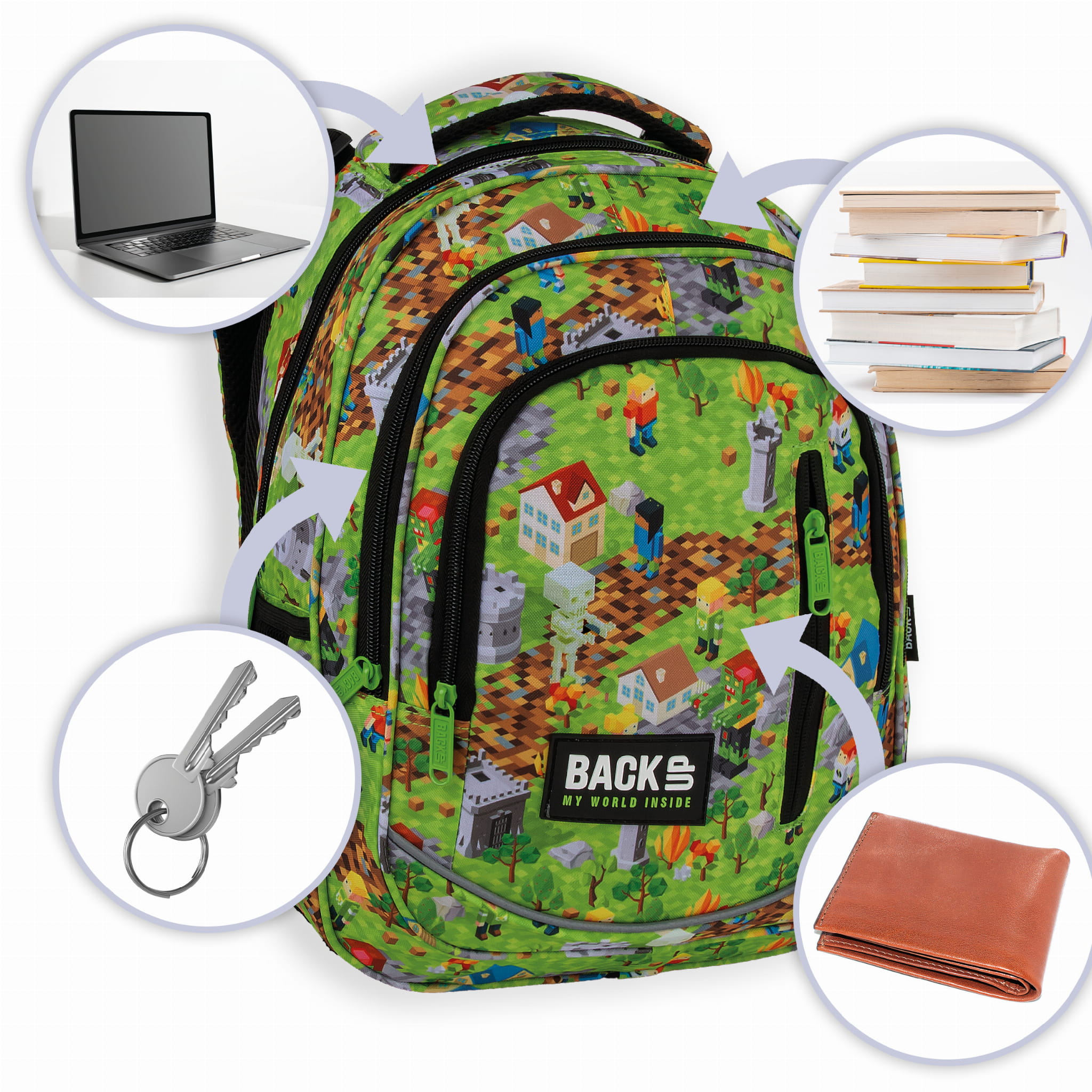 Taniej w zestawie!Plecak szkolny dla chłopca Back Up Minecraft, motyw gamingowy, 24 l