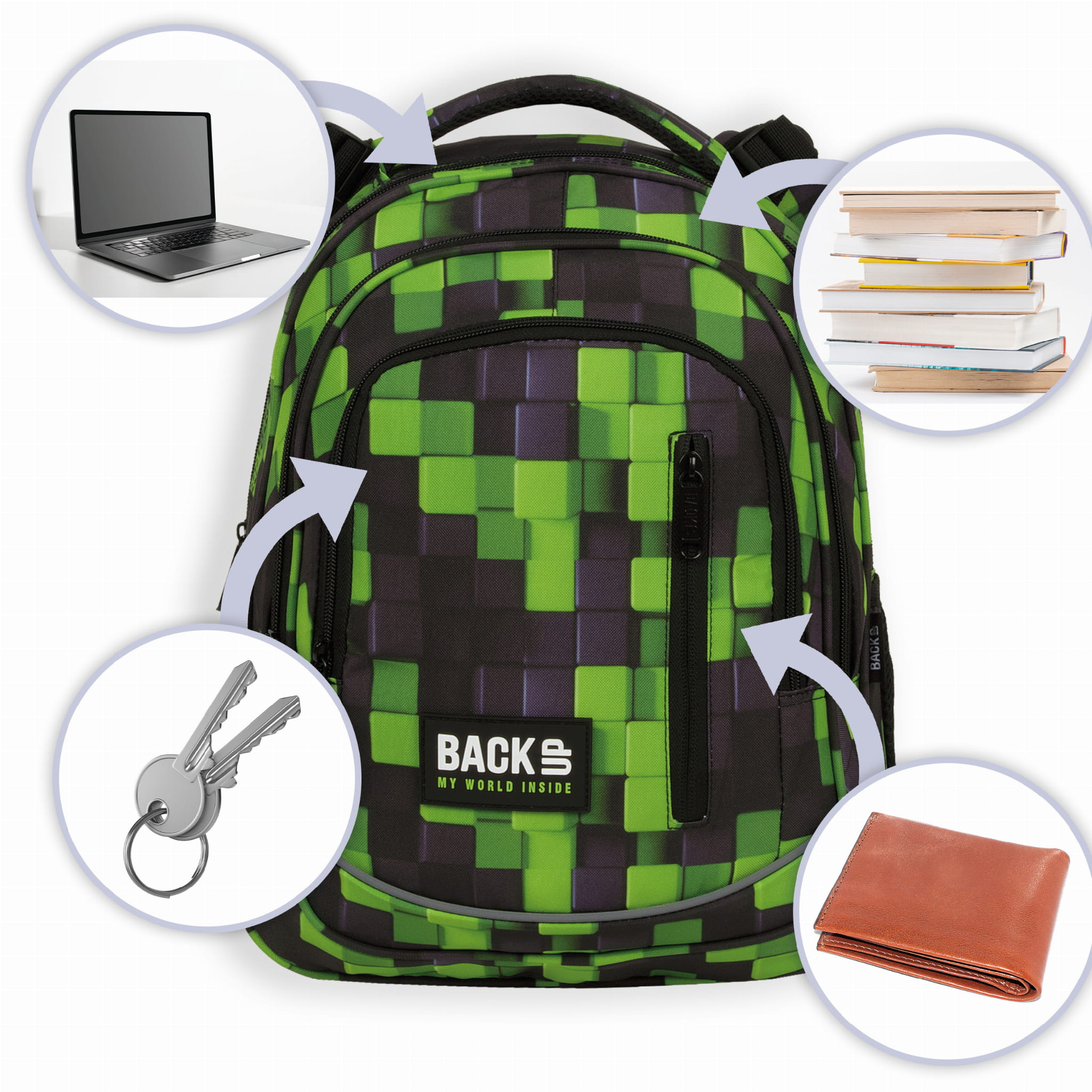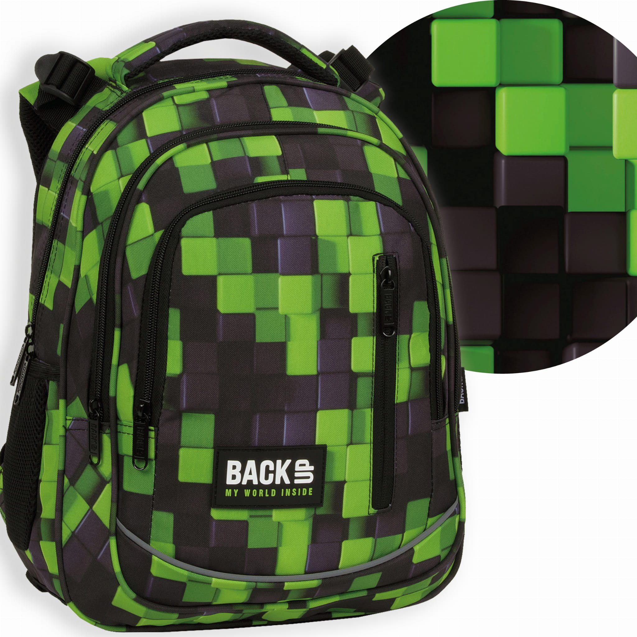 Plecak szkolny ergonomiczny dla chłopca Back Up – czarny gamingowy z zielonym