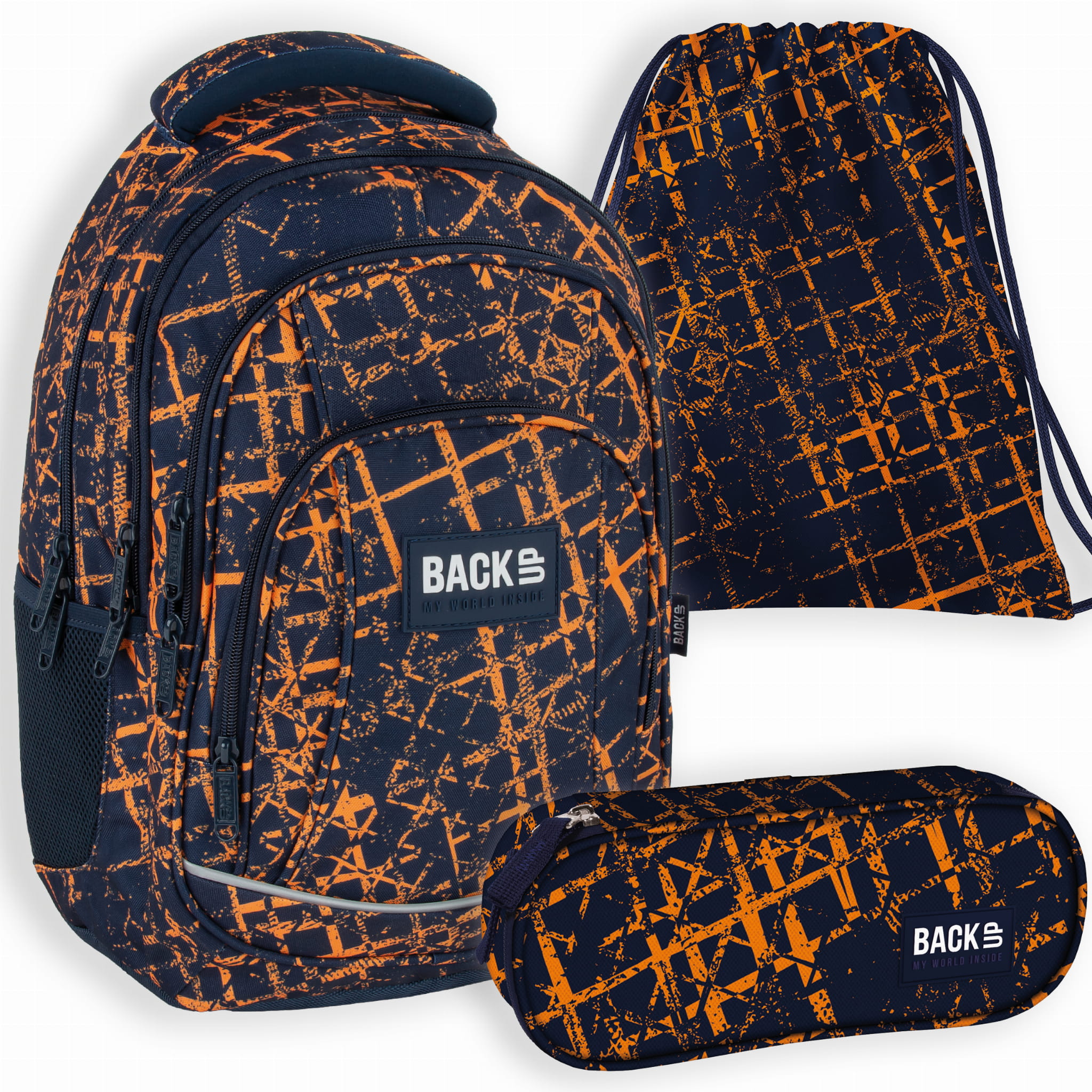 Zestaw szkolny dla chłopca 3w1 Back Up – plecak + pórnik + worek, city lights, miasto nocą, czarny, 26 l
