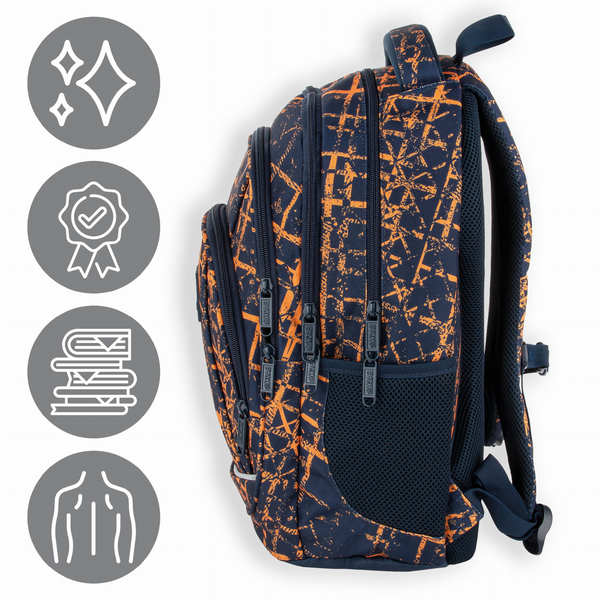 ✅ Posiada cztery pojemne komory, idealne do organizacji podręczników, laptopa, czy drobnych akcesoriów.