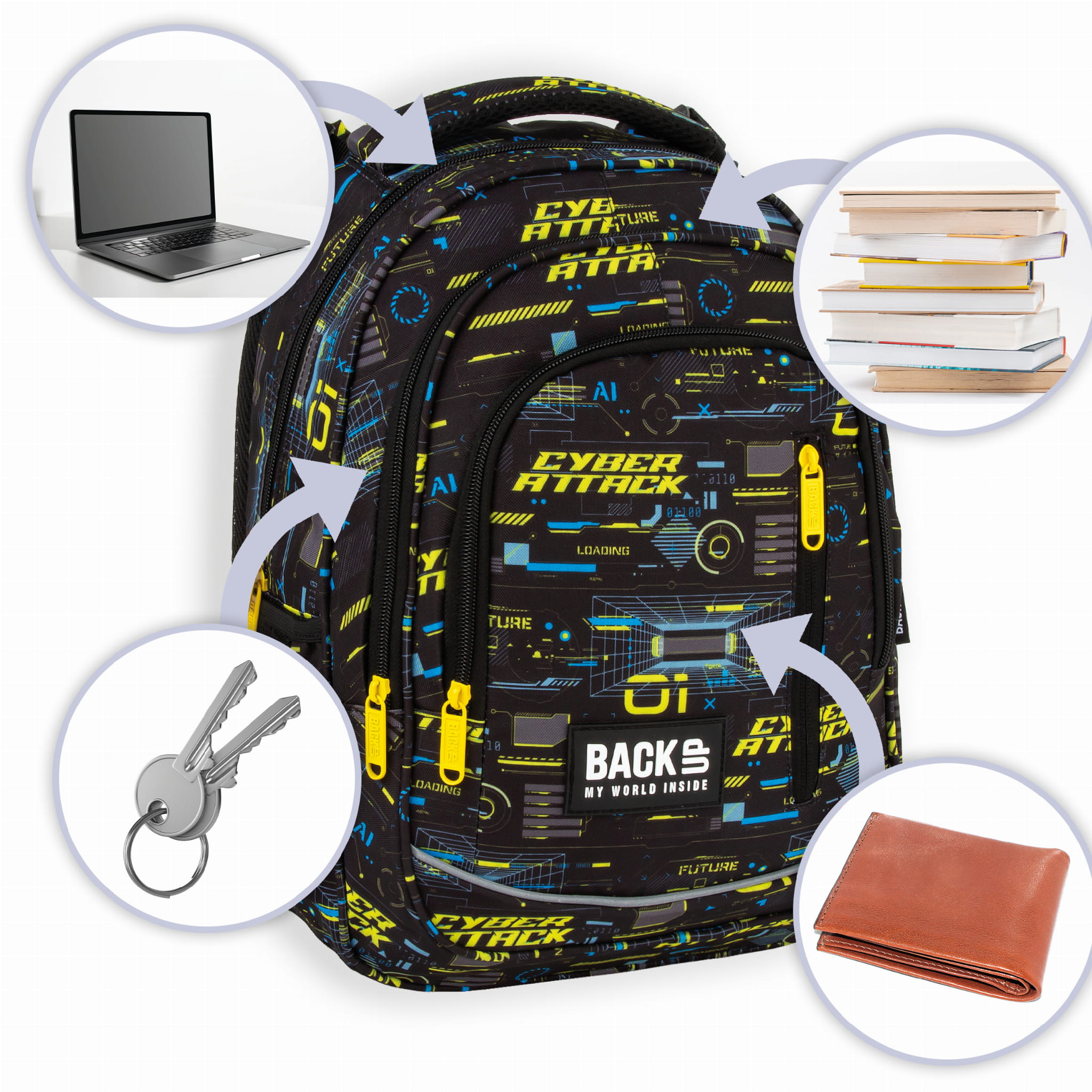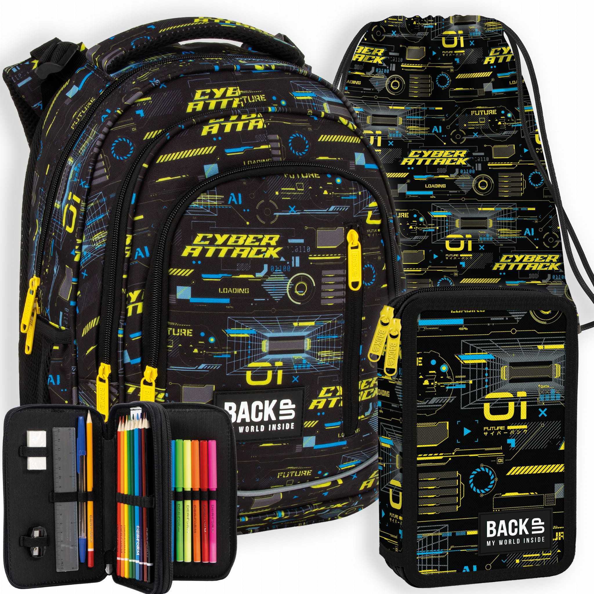 Piórnik szkolny z wyposażeniem Backup podwójny cyber attack
