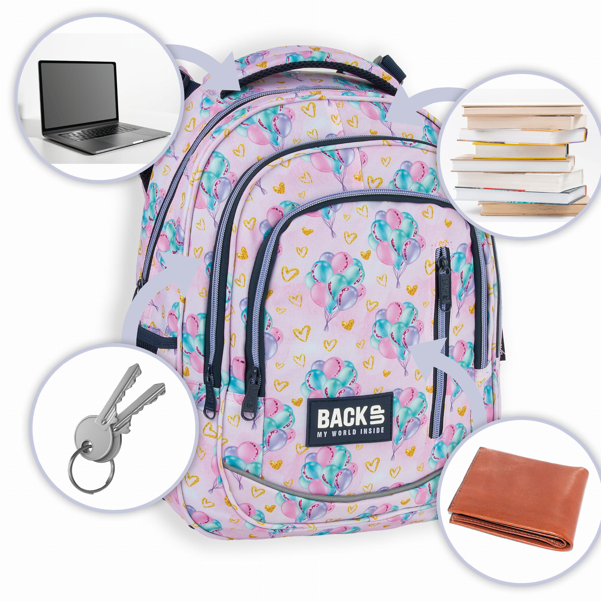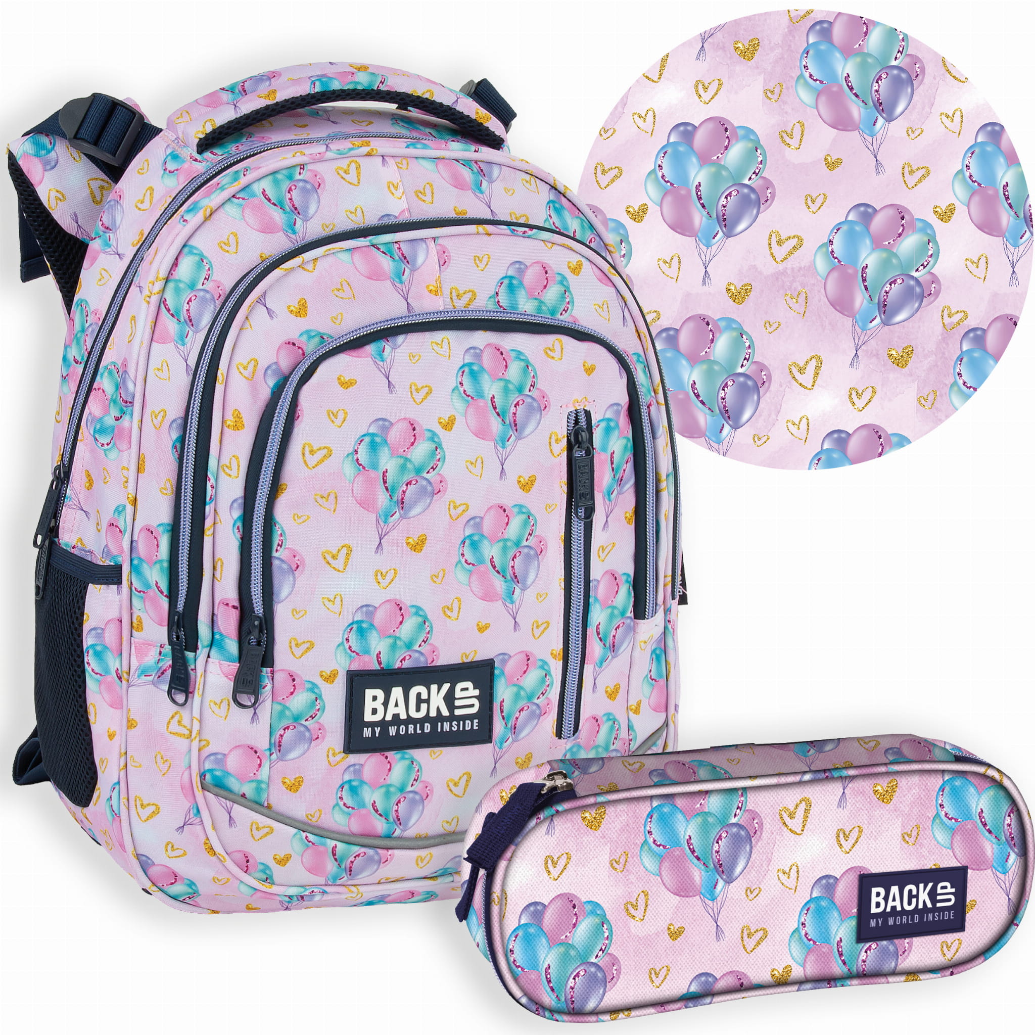 Zestaw szkolny dla dziewczynki 2w1 Back Up – plecak + pórnik różowe baloniki 24 l
