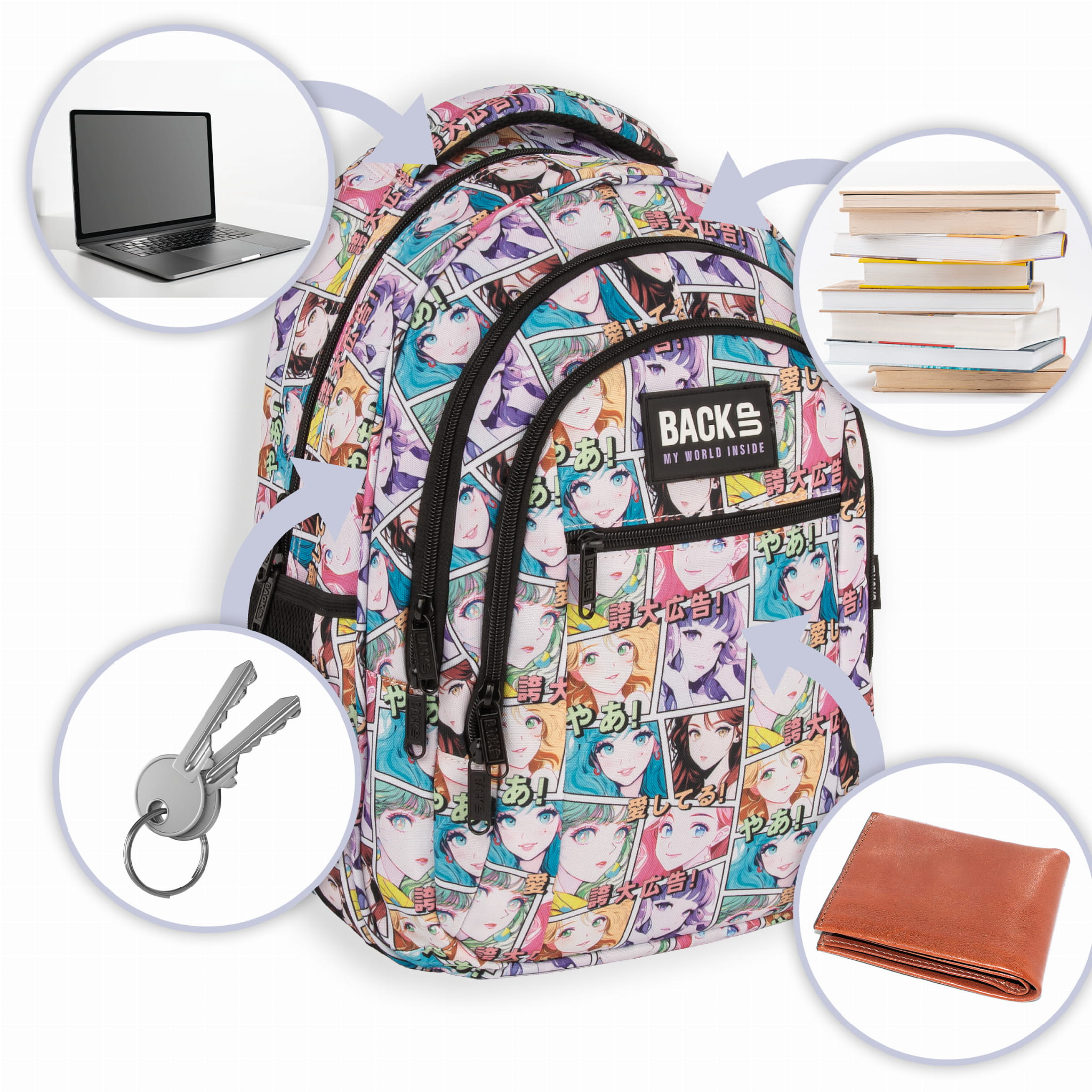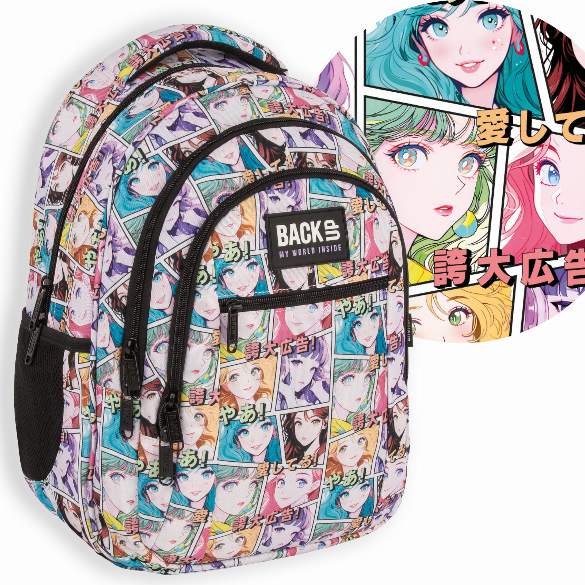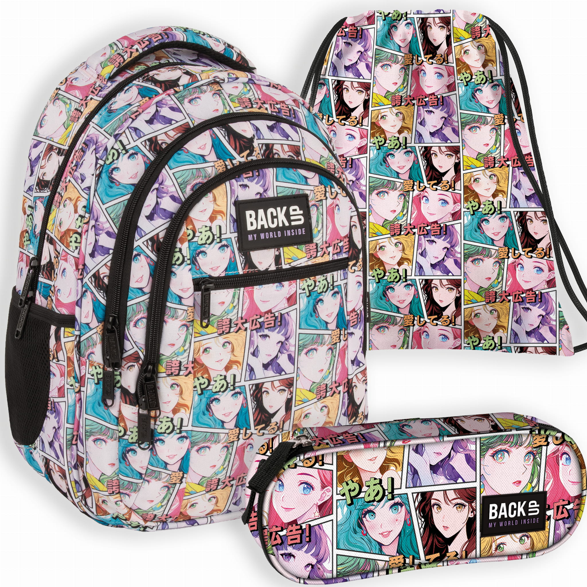Zestaw szkolny dla dziewczynki 3w1 Back Up – plecak + pórnik + worek, motyw manga i anime, 26 l